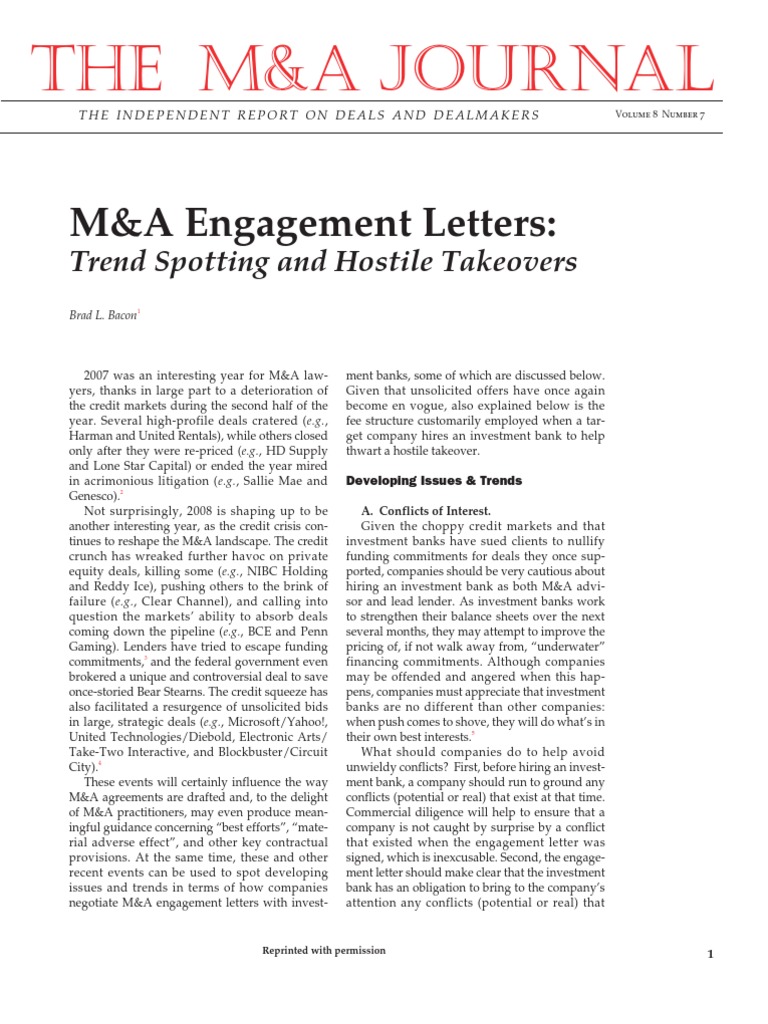 Engagement Letters | Mergers And Acquisitions | Investment ...