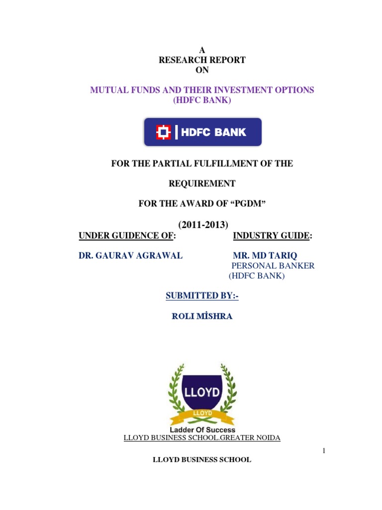 Mutual Funds and Their Investment Options (Hdfc Bank ...