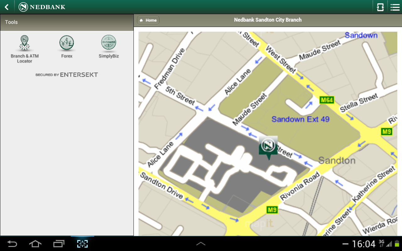 Mobile Maps for Nedbank App