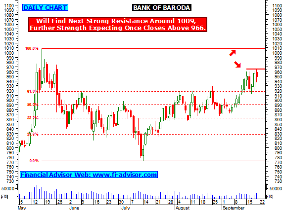 BANK OF BARODA facing golden ratio resistance around 1080.