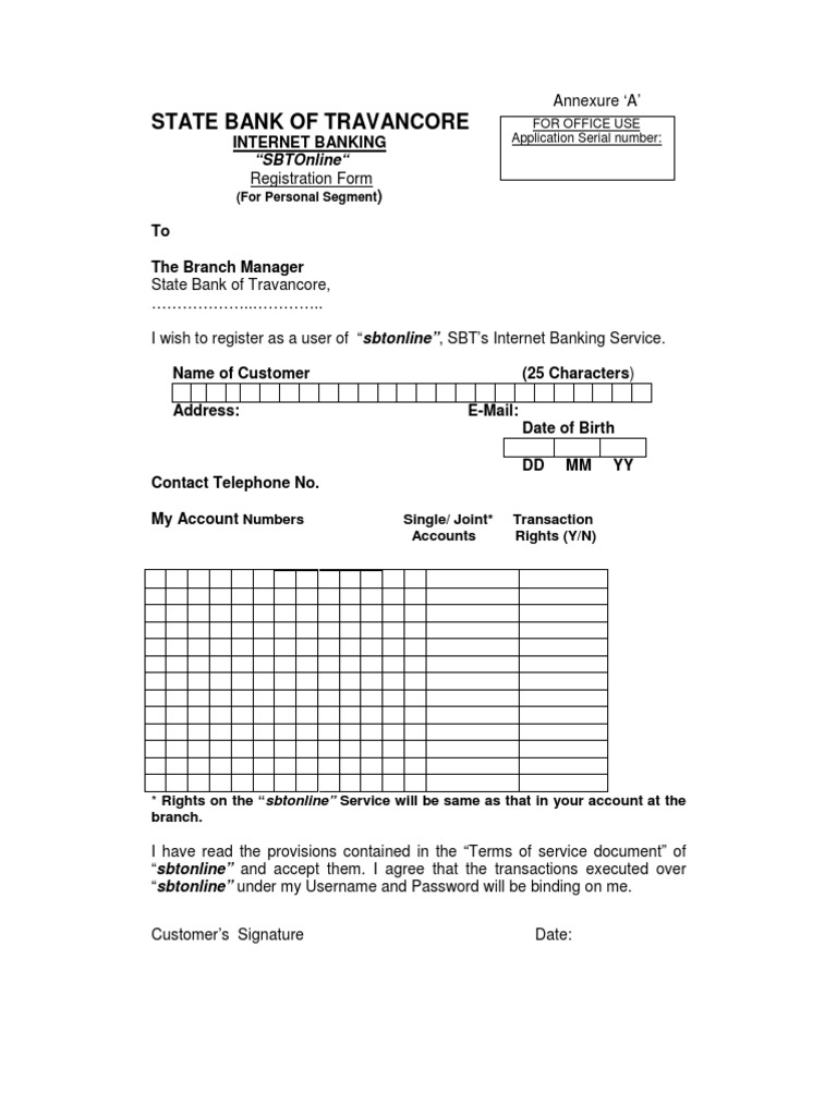 Sbt Online Banking Application Form