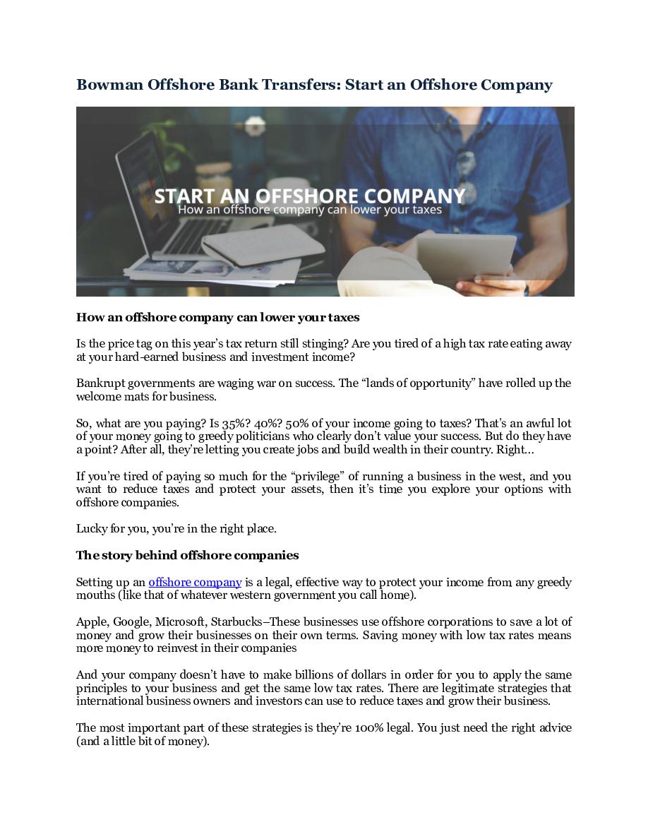 Bowman Offshore Bank Transfers: Start an Offshore Company ...