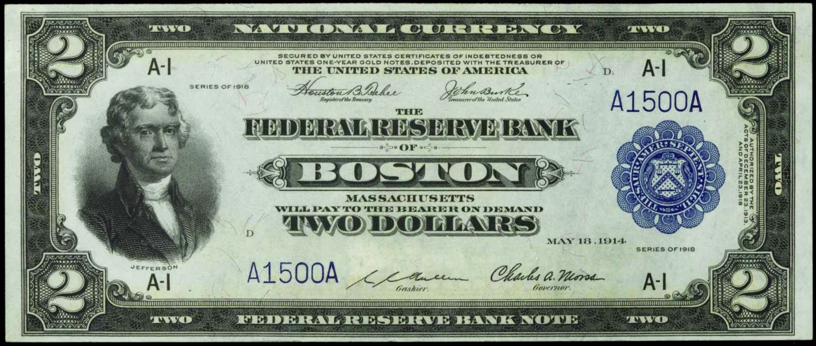 1918 Battleship 2 Dollar Bill Federal Reserve Bank Note ...